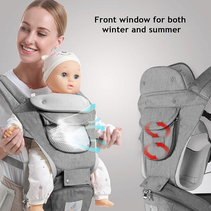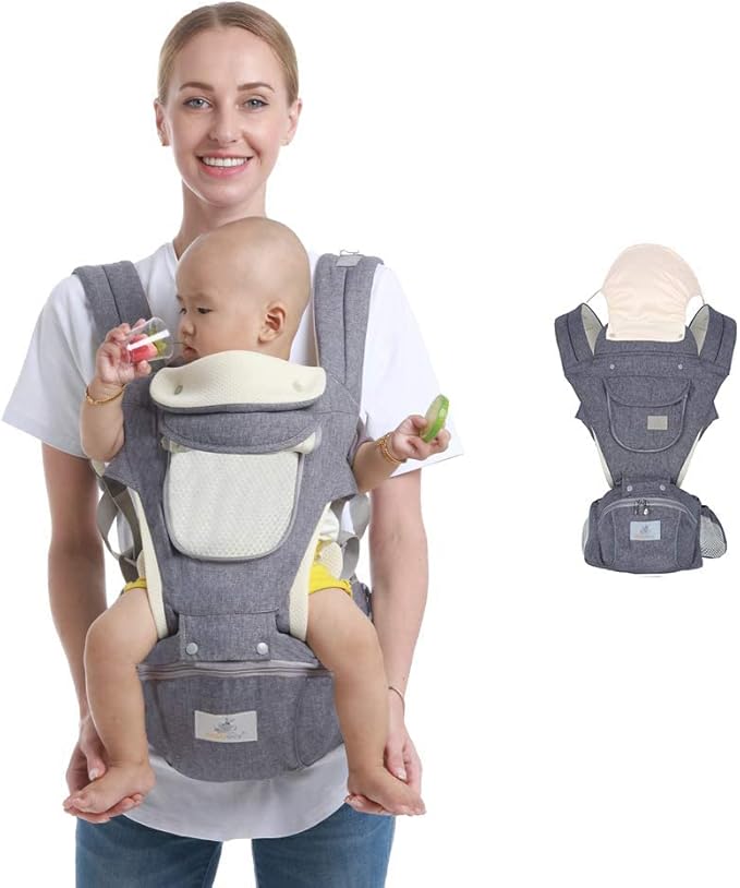 - 【More Thoughtful Designs】The hip carrier for baby comes with multiple storage pockets for bottles, diapers, wipes, keys, wallet, phone and more. The hood provides protection from the wind and sun for baby, and can even be used as a privacy cover for nursing mothers.