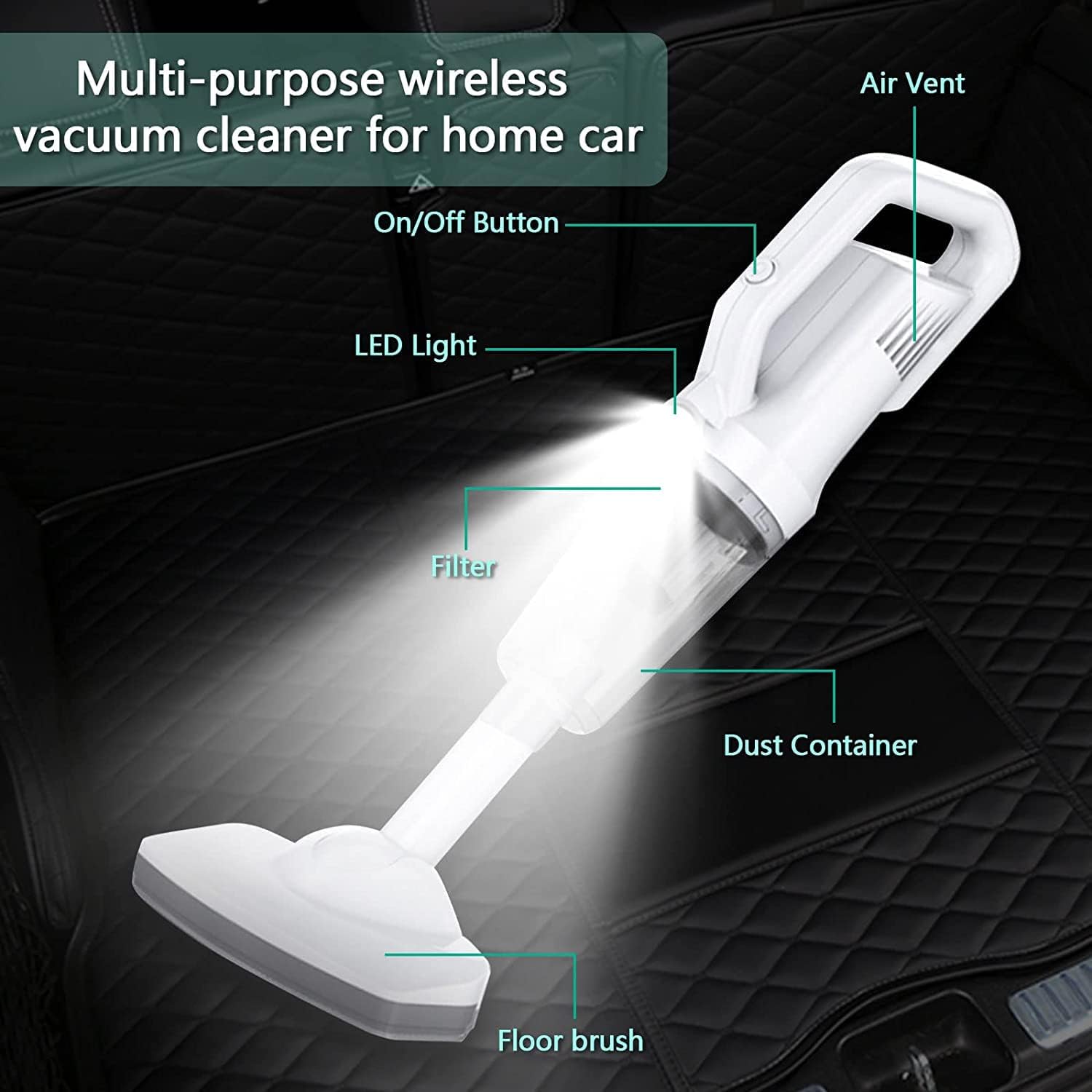- 【LED Light & Cordless Vacuum】Fanadith handheld vacuum cleaner wireless design with a 15.35" mini appearance and light weight can be convenient and more portable to carry. The LED light to help clean the dark corners. It is very suitable for home, car cleaning. Make it be a perfect Birthday, Thanksgiving and Valentine's Day gift for family, friends and lover. No need for bulky and tangled wires, the USB power cord can be charged anywhere.